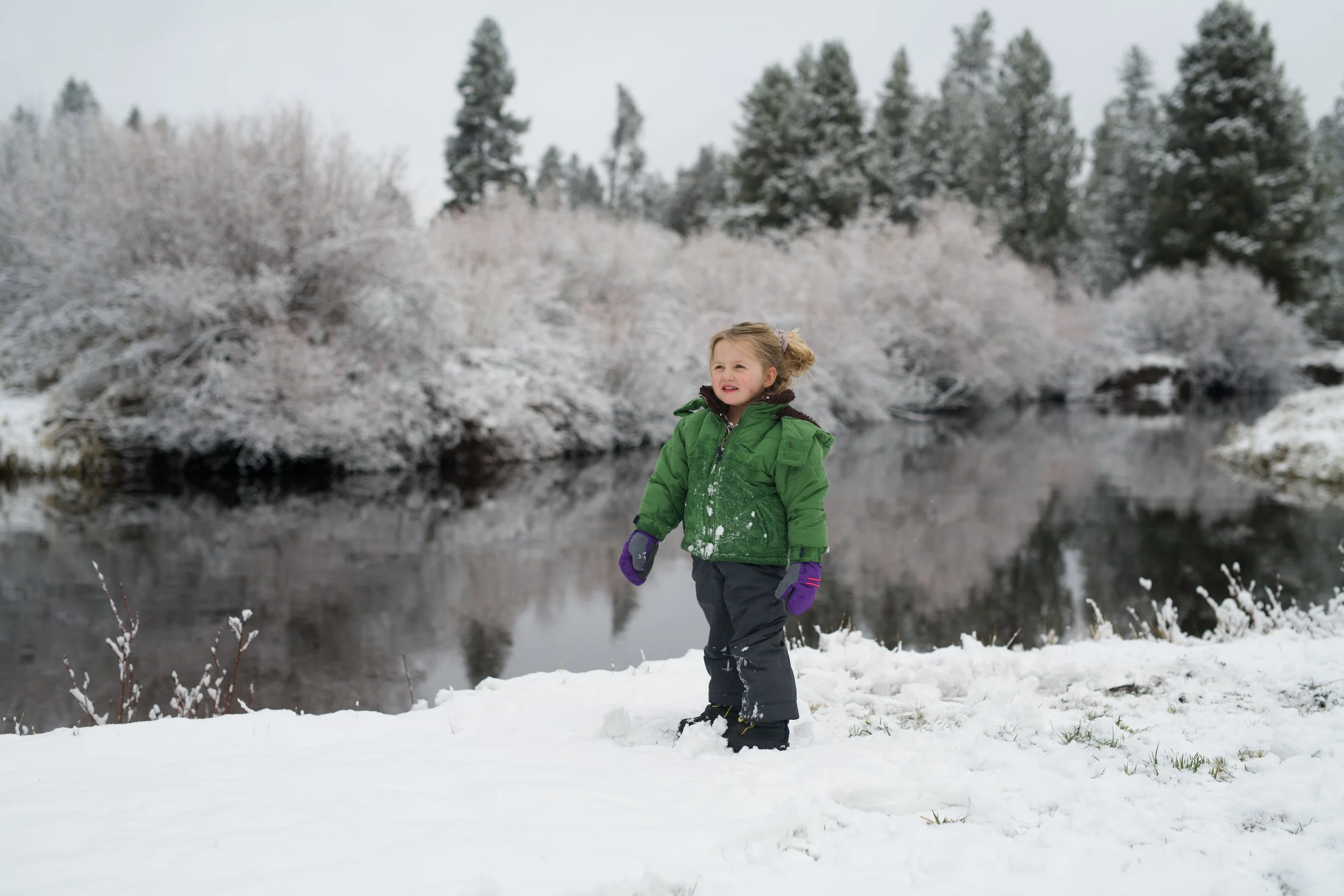 God brought us into Bend safely and expediently. The girls were content and generally quiet with 5 short stops for food, gas, and potty. Lila enjoyed movies in the van for the first time, which were a huge hit! The roads were clear and we got to drive through a light snow as we went around Mt. Shasta. The high desert around the base of Shasta is one my favorite geographies to drive through and the snow was icing on the cake for that stretch.